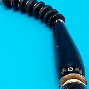 *Description: This is a great Chico's chunky black beaded necklace with accent beads in cream and silver in a variety of shapes. The beads appear to be acrylic and wood. There is a Chico's hang tag near the lobster clasp. The total length of the necklace is 23 Inches. This would be a great addition to your jewelry collection or make a great gift!