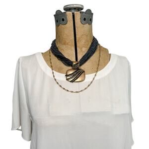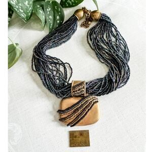Fab Chico's Chunky Boho Beaded Gold Pendant Multistrand Statement Necklace!