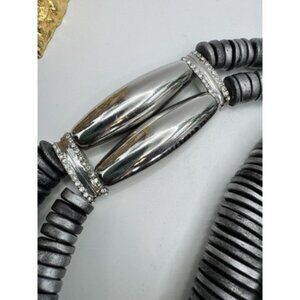The Chico's Chunky Metallic Gray SilverTone Disk Rhinestone Statement Layered Necklace is a stylish and eye-catching piece of jewelry .
