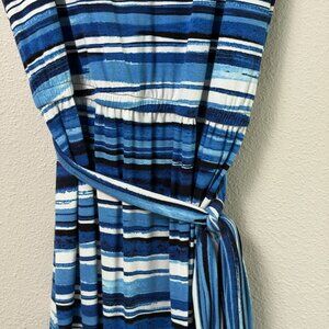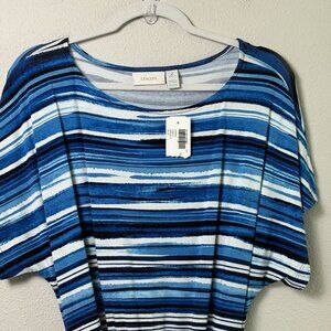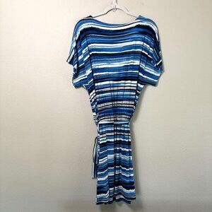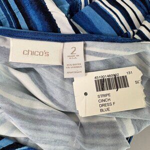 Chicos Cinch Waist Dress Size 2 US L Blue Striped Belt Short Dolman Sleeve NWT