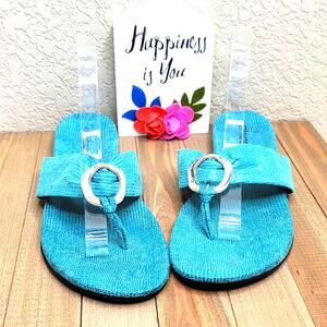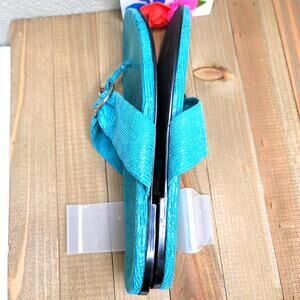 Tied in a chic knot, the wide faux-lizard straps are gentle on the feet-it's easy to walk a mile in our shoes. Easy, slide-on styling. Ergonomically molded foot beds. Manmade materials.