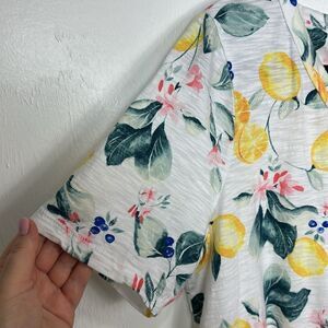 Chico’s Citrus Lemon V-neck Cotton Slub Elbow Tee Size L