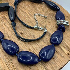 Chico's Classic Navy Blue Lucite Beads Silver Tone Clear Square Long Necklace