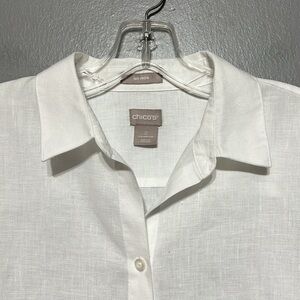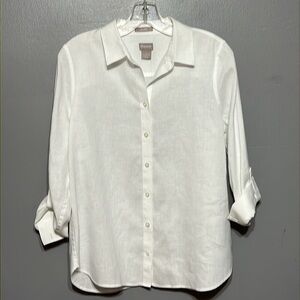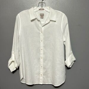 Chico’s Classic-Fit No-Iron Linen Shirt Long Sleeve Crisp White Button Up Top