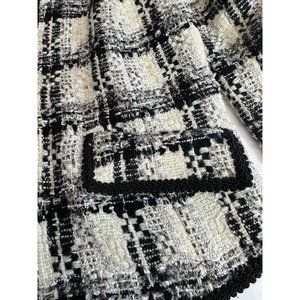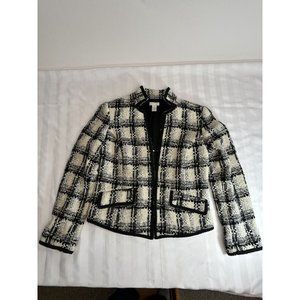 Chicos Classy Wool Blend Short Jacket Womens Black/White SZ 0 Very Gd Condition