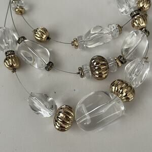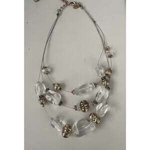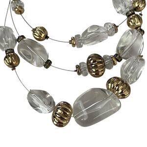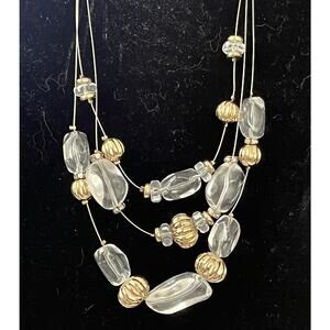 Chico's Clear Illusion 3-Strand Station Beaded Layered Necklace Gold Tone 16-20"
