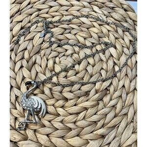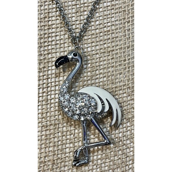 Chicos Clear Rhinestone & Enamel Flamingo Pendant Silver Tone Necklace 30~33in