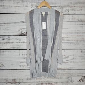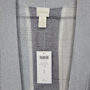Chico's Cleo Vertical Stripe Open Front Cardigan Grey Silver Metallic Size 1