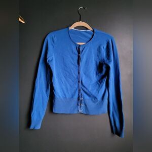 Chicos Cobalt Blue Snap Rhinestone Center Silver Closure Long Sleeve Sz M