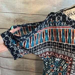 Chico’s Cold Shoulder Dress Short Sleeves Geometric Design Chicos 3 = XL Shift
