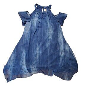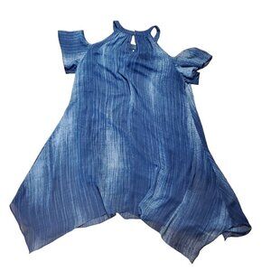 Chico’s Cold Shoulder Handkerchief Dress Women 3 Indigo Lightweight Polyester.
