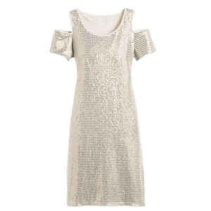 Chicos Cold Shoulder Sequin Dress Size 0 petite EUC