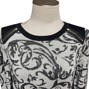 Chico's Collection Lurex Jacquard Sweater Black Neutral 1 / Medium