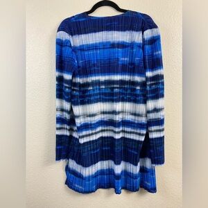Chico’s Collection Open Front Blue Tie Dye Office Career Office Long Sleeve Boho Textured Cardigan Women’s XL