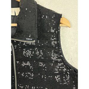 Chicos Collection Womens Sequin Quilted Vest Size 2 US Large Black Holiday