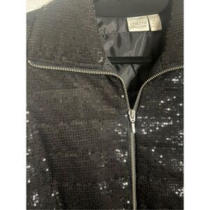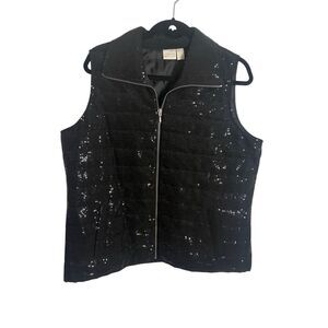 Chico's Collection Women's Sequined Quilted Full Zip Vest Black Size 2/Medium