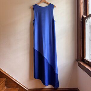 Chicos Colorblock Asymmetrical Maxi Dress Size 3 Cotton Poplin Nautical Blue