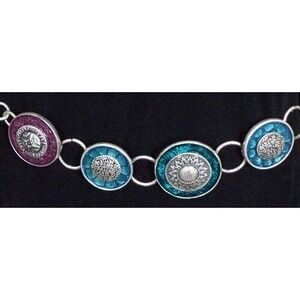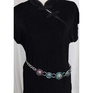 Chico's Colored Enameled Circular Metal Discs Chain Link Adjustable Belt M 8 10