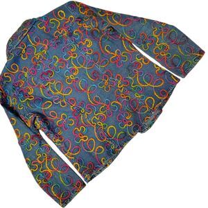 Chico's Colorful Long Sleeve Blue Denim Jacket Embroidery Artwork Size M/8