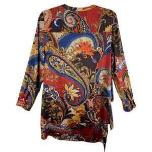 Chico's Colorful Paisley Satin Long Sleeve Asymmetrical Hem Tunic Blouse Size S