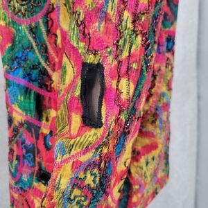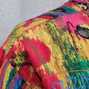 Chico's Colorful Silk Avant Garde Lightweight Jacket Beaded Embroidered Artsy