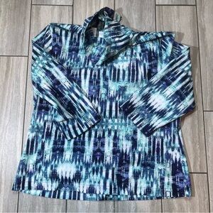 Chico’s Commodore Elksa 3/4 Jacket Sz 2 Large Purple Turquoise Multi Full Zip