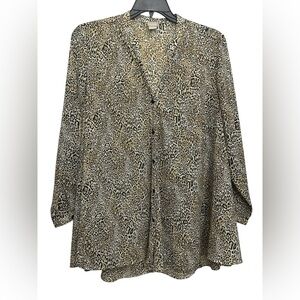 Chicos Convertible Cheetah Print Shirt Size Large Relaxed Lightweight Button Up