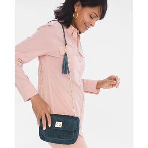 Chico's Convertible Crossbody Green Textured Leather Bag