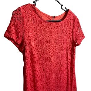 Chico’s Coral Crochet Lace Sheath Dress Size 0 (XS)