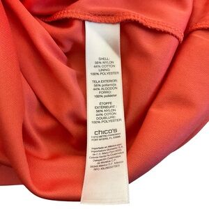 Chico’s dress, coral lace dress, sheath dress, short sleeve, size 0 Chico’s, summer wedding guest dress, cocktail dress, spring dress, bright red dress, feminine style
