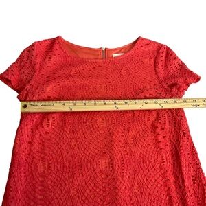 Beautiful coral red short sleeve sheath dress from Chico’s featuring intricate crochet lace overlay and a flattering silhouette. Fully lined with a back zipper closure for ease and comfort. This dress is perfect for weddings, brunches, or summer events. Chico’s size 0, which fits like a women’s extra small or size 4/6. Excellent condition—no stains, snags, or flaws.