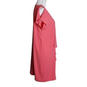 Chicos Coral Pink Chiffon Cold Shoulder Shift Dress Size O US 4P PETITE Ruffled