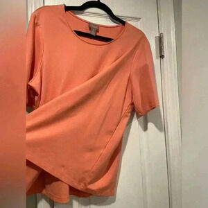 Chicos Coral Short Pleated Sleeve Round Neck Soft Stretchy Tee Size L
