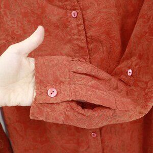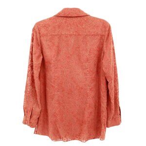 Chico's Corduroy Burnout Shirt Womens M Orange Western Preppy 70's Boho Academia