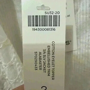 Chico’s Cotton Eyelet Embellished Jacket Size Large