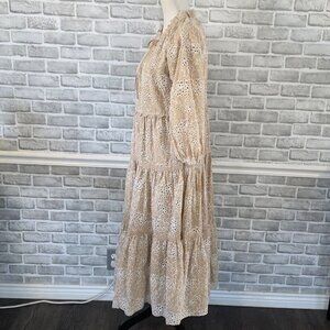 Chicos Cotton Eyelet Tiered Maxi Dress Long Bishop Sleeve Cottage Prairie Med