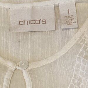 Chico's Cotton Gauze Embroidered BOHO Peasant White Noise Top Sz 1 (M/8) #283B