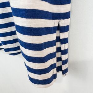 Chicos Cotton Slub Stripe Button Back Tee Womens 2 (L) Seafaring Blue Nautical