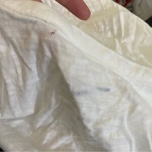 Condition: Fair Used Condition. Brand crossed out logo on interior and unfortunately that permanent marker bleeds through to the back. There’s also a small hole at the back neckline area as well. Wrinkled from storage.