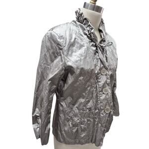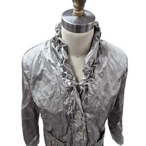 Chico's Cotton/Poly Blend Metallic Crushed Satin Pale Green Jacket Sz 1( S/M)