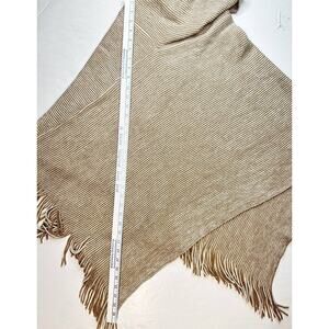 Chicos Cowl Neck Poncho OS Beige/Tan Metallic Striped Knit Sweater Fringe NEW
