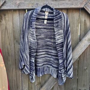 Chicos Cozy Crocheted Metallic Knit Colleen Cocoon Cardigan Sweater
