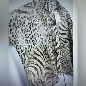 Chicos Crafted Womens Mix Animal Print Beige Button Up BECCA Top Sz 1/M NWT