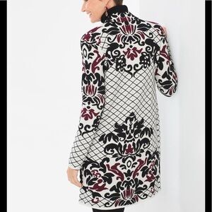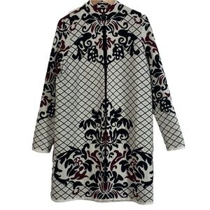 - Chico’s Cream Black Burgundy Scroll Print Cardigan Sweater