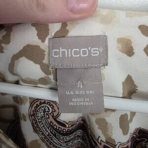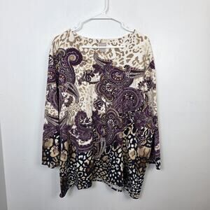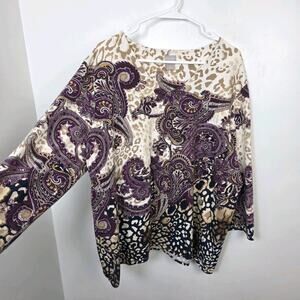 Chico's Cream Black Purple Mixed Print 3/4 Sleeve Avant Garde Shirt Size 2XL