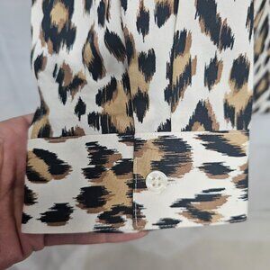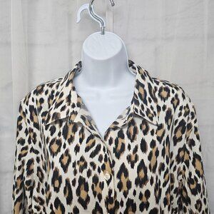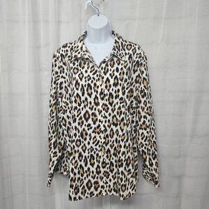 Chico's Cream Brown Leopard Button Down Blouse Tribal Office 4 (1X)