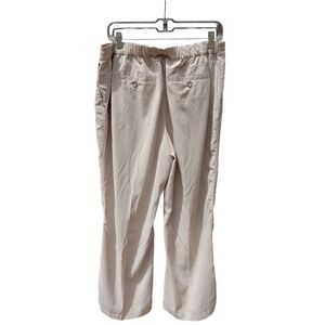 Chico's Cream Drawstring Pants Zipper Pockets Lightweight Straight Leg Size 2 equivalent to a size 12
