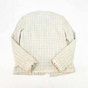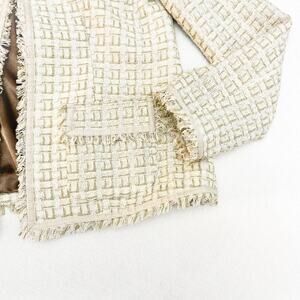 Chico's Cream Metallic Woven Plaid Patterned Fringe Hem Blazer Jacket Size 0
