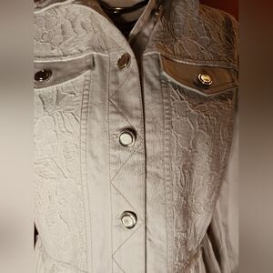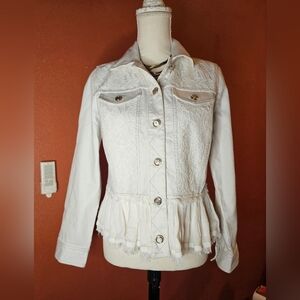 Chico's Cream Peplum Jean Jacket