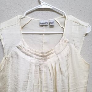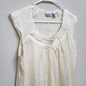 Chico's Cream Sleeveless Top Size Medium 8 Chicos 1 Pleated Front Blouse